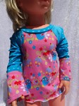 Jersey Langarmshirt "Birdies" mit türkis abgesetzt und Trompetenärmeln